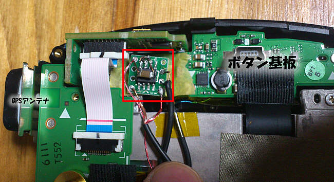 このうち、「現在地」ボタンと「NAVI/AV」ボタンに、以下のようにリード線を半田付けします。