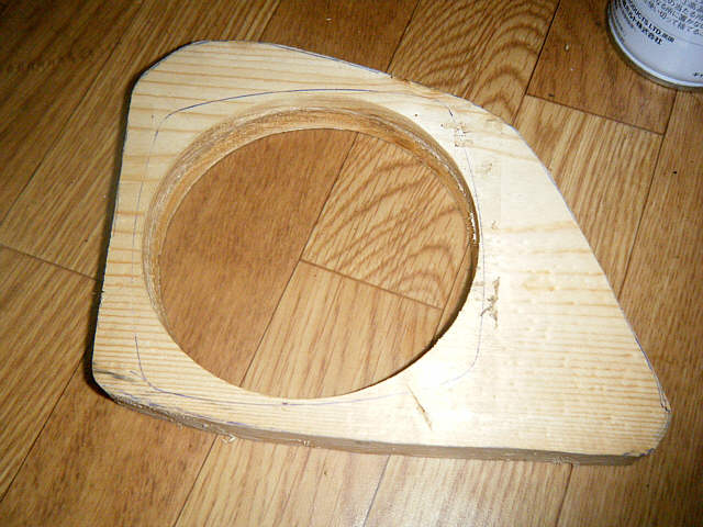 ではまず、2センチ厚の板をいい形に切り、スピーカーホール(100mm)を空けました。