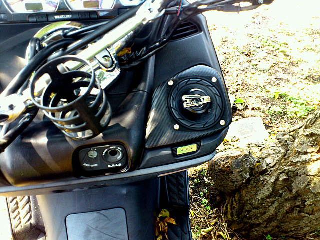とりあえず、ハンドル下の小物入れをほとんど使わないそうなので、ここに入れることに。