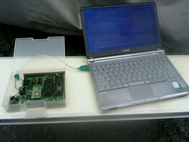 その後PICのチップをパソコンに接続し、設定値を修正。そしてまた実装テスト。